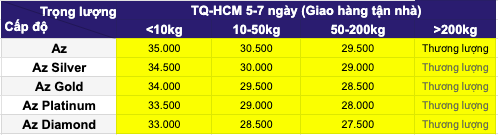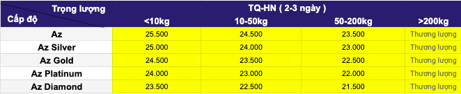 Với tiêu chí mang hàng về cho khách nhanh nhất cũng như những trải nghiệm dịch vụ tốt nhất, chúng tôi luôn không ngừng cố gắng nghiên cứu để nâng cao chất lượng dịch vụ. Tuy nhiên do tình hình biến động thị trường trong thời gian gần đây, để đảm bảo chất lượng dịch vụ và thời gian vận chuyển được ổn định, Azlogistic xin thông báo điều chỉnh chính sách giá vận chuyển quốc tế từ Trung Quốc về Việt Nam sẽ áp dụng cho đơn hàng Vận chuyển Nhanh (VCN) và có thời gian đặt cọc từ 00h ngày 03/10/2023 như sau: