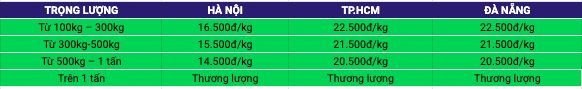 Lưu ý: Các đơn hàng đặt cọc trước 00h ngày 03/10/2023 sẽ áp dụng biểu phí cân nặng cũ.